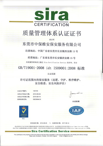 中華(huá)保安企業聯合會(huì)會(huì)員證書