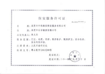 保安服務是指:保安服務公司根據保安服務合同,派出保安員爲客戶單位提供的門衛、巡邏、守護、押運、随身護衛、監控、安全檢查以及安全技術防範、安全風險評估等服務。